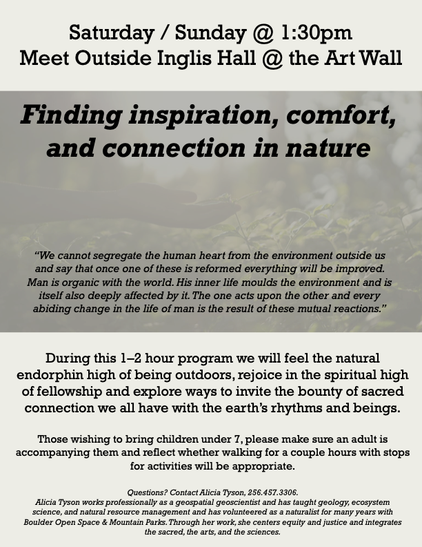 - Sunday morning 6:30am: Guided meditation walk with Alicia