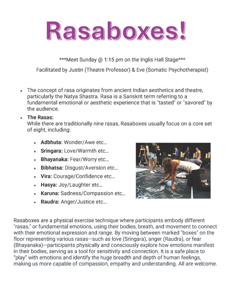 - Sun 1:15-2:30pm: Rasa Boxes experiential activity with Justin & Eve Beilovei (meet on Inglis stage)